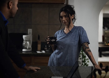 Stepdad Chad White is in the kitchen one morning having coffee, and unhappy to see his sexy but tousled-haired stepdaughter April (Olsen) wander in very late in the morning. She's wearing just a dirty t-shirt and panties. Chad rolls his eyes as he tries not to sneak a peek of her perfect apple bottom. He's an ex-marine, and wants April to shape up, threatening to kick her out of the house if she doesn't.