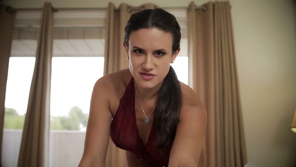 They go to the master bedroom, and she admits: "I don't really come in here anymore. It reminds me of your dad -I just kinda like to keep it the way it is, the way it was". "How is dating?", she asks Jason about his dating habits at school, noting that she's not been successful in her tentative entrance back into the dating pool since his daddy's passing. Penny recalls that she used to dress up in sexy lingerie for his dad, and asks Jason if he would mind giving his opinion on how she looks in them. Going to the dresser to fetch some underwear to try on for him, she turns to her stepson and says: "Don't peek". She models a vintage black slip for him, but is taken aback as Jason doesn't like it. She tries to defend her choice, noting it's black and kind of sexy, then places Jason's hand on her breast, contending: "It's soft". He's not impressed, but when he begins to caress her breast, mom looks down and concedes: "It's pretty easy to give you an erection, isn't it? So you do like it". He's still unconvinced, and Penny wants to find something that will be a turn-on for her dating. "I do have a couple of other things I could show you", she offers, noting sheepishly that "I feel like we're kind of being bad". She goes back to the dresser and gets completely naked, showing off her gorgeous butt as she shimmies out of the slip and panties. Penny puts on a pink satin teddy that highlights her figure tastefully but to the best advantage, asking him: "What do you think?." She poses sexily and even winks at Jason, noting: "You can tell me -I'm your mom". On her invitation he reaches out and caresses mom's breast once more, and she says: "Don't think of it as touching me, you're touching the fabric". Penny becomes turned on, and speculates about how sexy it would be if she wore lingerie while doing her daily housework, joking: "If mommy wore really, really sexy lingerie, would you help me wash the dishes?". After some more breast worship, she declares: "You are such a bad boy -you get mommy all excited". Stripping off the teddy, she has one more look to show him. It's a translucent purple lacy slip that finally pleases him. "I'd really like you to experience the whole thing. Are you gonna make mommy spell it out for you? I want you to go lie down on the bed, and I want you to fuck me like I haven't been fucked in ages. Come give mommy what she needs", she declares. Watch the taboo scene unfold...